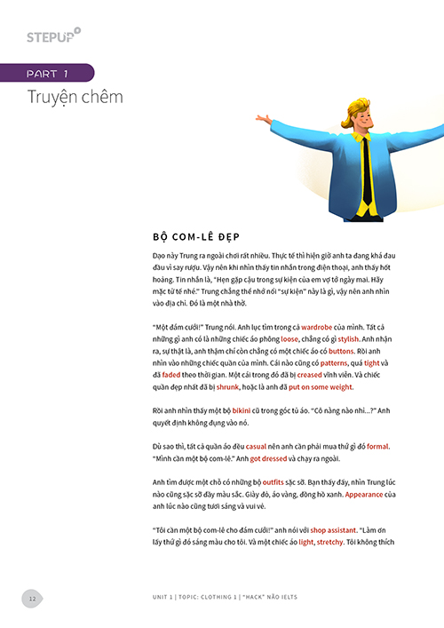 • Thứ năm: Học là mê. Đa phần trong số chúng ta lười học nhưng lại chăm đọc truyện. Các truyện trong cuốn sách đều có thể cắt ra và đưa lên tạp chí hài. Đội ngũ viết truyện, minh hoạ và dàn trang đều được Step Up đặt hàng từ những tác giả của các NXB lớn trên thế giới. Không chỉ chất về nội dung mà chất cả về hình thức. Sách được in 4 màu trên giấy ngoại, đây rất có thể là “hoa hậu” trong giá sách của bạn.